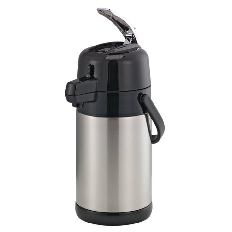 Service Ideas, SECAL19S, SECA-Air Airpot, 1.9 liter (64.2 oz.), 5-1/2" x 7-1/2" x 12-1/4", retention: 4-6 hours, smooth body, stainless steel liner, lever style, black lid, vacuum insulated, hand wash (do not submerge), stainless steel, brushed (Priced per each, packed 6 each per case)