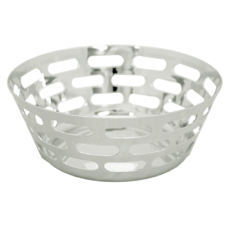 Service Ideas, SM-75, Mod18 Steelworks Bread Basket, 6-1/2" dia. x 2-1/2"H, round, dishwasher safe, 18/8 stainless steel, polished finish (Priced per each, packed 12 each per case)