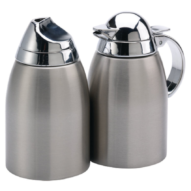Service Ideas, SSC85, Sugar & Creamer Set, 8 oz., 5" x 3-1/2" x 4-3/4", chrome plated lid (hand wash), dishwasher safe, 18/8 stainless steel, brushed finish (Priced per each, packed 24 each per case)