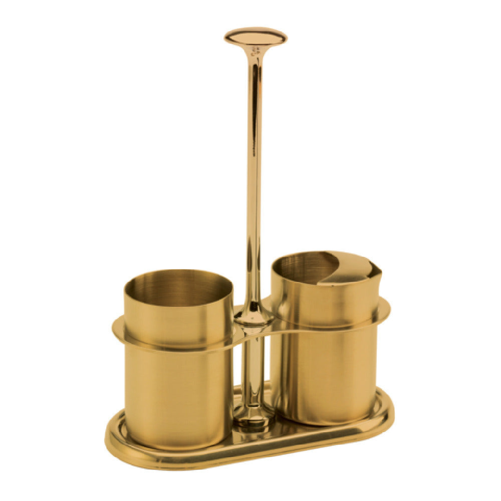 Service Ideas, STCCRSG4VG, Creamer & Sugar Set, 5-3/4" x 3" x 7-1/2" holder, includes (1) 4 oz. creamer and (1) 4 oz. sugar holder, dishwasher safe, 18/8 stainless steel, vintage gold