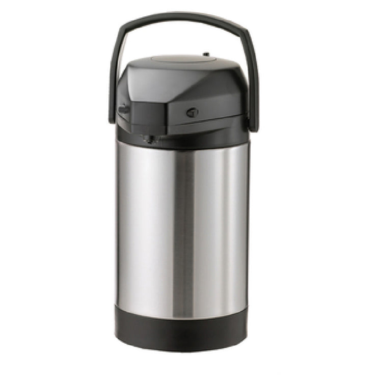 Service Ideas, SVAP25P, Lock ‘N’ Carry Airpot, 2.5 liter (84.5 oz.), 6-1/4" x 9" x 13", retention: 4-6 hours, smooth body, double wall, black lid with locking mechanism, vacuum insulated, pump style, hand wash (do not submerge), 18/8 stainless steel, brushed finish, NSF (Priced per each, packed 6 each per case)