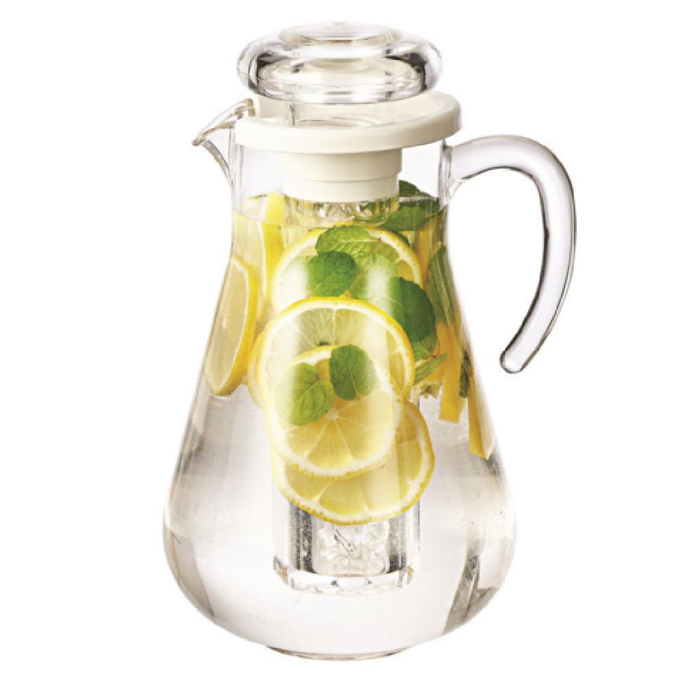 Service Ideas, SWP19SB, Water Pitcher, 1.9 liter (64.2 oz.), 6" x 6-3/4" x 10-1/2", with ice tube, smooth surface, hand wash, BPA free, SAN plastic, clear (Priced per each, packed 6 each per case)