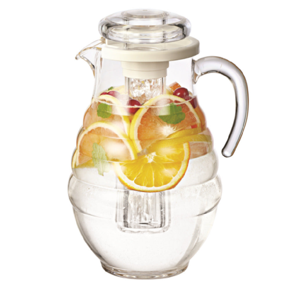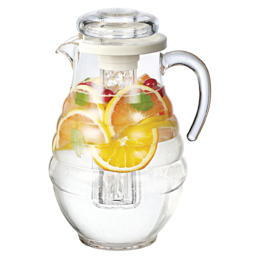Service Ideas, SWP33RB, Water Pitcher, 3 liter (101.4 oz.), 6-3/4" x 7-3/4" x 11-1/2", with ice tube, ribbed surface, hand wash, BPA free, SAN plastic, clear (Priced per each, packed 6 each per case)