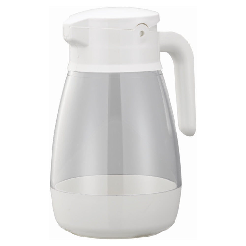 Service Ideas, SY916WH, Syrup Saver™ Syrup/Topping Dispenser, 16 oz., 3" x 4-1/4" x 5-3/4", dishwasher safe, uninsulated, self-locking lid, dripless, flow-controlled spout, plastic construction, white, Made in USA (Priced per each, packed 6 each per case)