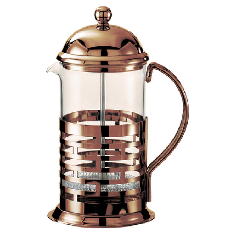 Service Ideas, T677BRNZ, Brick French Coffee Press, 0.8 liter (27 oz.), 4-3/4" x 6" x 9", includes: lid, spiral screen, mesh screen & fine mesh screen, 2-3 hour heat retention, dishwasher safe body (hand wash screen and plunger), Pyrex® glass liner, 18/8 stainless steel, bronze finish (Priced per each, packed 12 each per case)