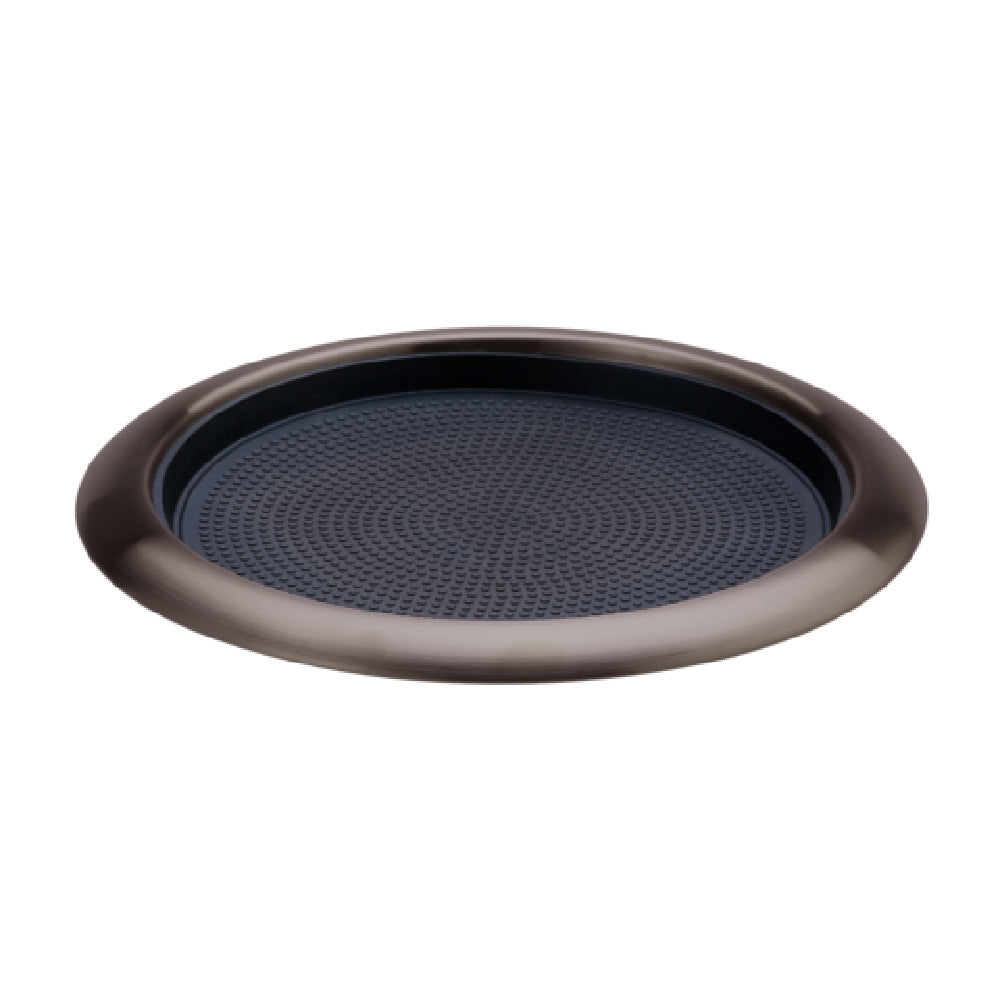 Service Ideas, TR119RIDT, Non-Slip Tray, 11"W x 11"D x 1"H, removable insert, round serving tray, dark tungsten PVD, dark tungsten, stackable, dishwasher safe
