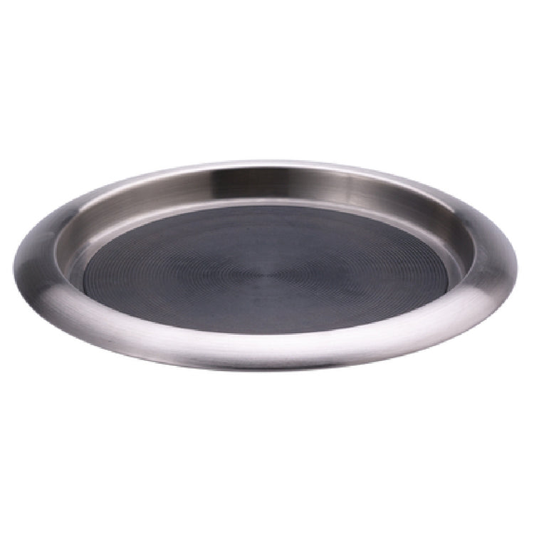 Service Ideas, TR119SR, Tray, 11" dia. (9" inside), round, stackable, molded in solid silicone rubber insert, non-slip, dishwasher safe, 18/8 stainless steel, brushed stainless steel (Priced per each, packed 12 each per case)