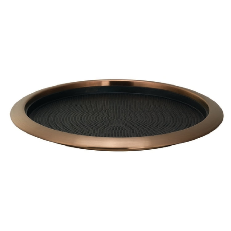 Service Ideas, TR1412RIRG, Metallic Elements Tray, 14" dia. (12" dia. inside), round, stackable, removable silicone rubber insert, non-slip, dishwasher safe, 18/8 stainless steel, rose gold finish (Priced per each, packed 12 each per case)