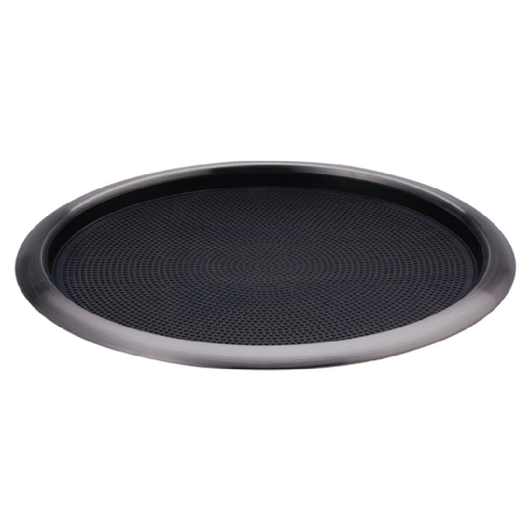 Service Ideas, TR1614RIDT, Tray, 16" dia. (14" inside), round, stackable, removable non-slip black rubber insert, dishwasher safe, 18/8 stainless steel, dark tungst (Priced per each, packed 12 each per case)