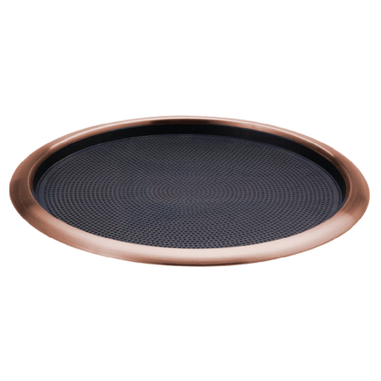 Service Ideas, TR1614RIRG, Tray, 16" dia. (14" inside), round, stackable, removable non-slip black rubber insert, dishwasher safe, 18/8 stainless steel, rose gold (Priced per each, packed 12 each per case)