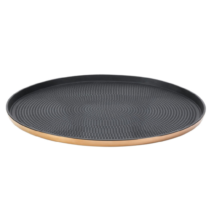 Service Ideas, TRME14RIRG, Insert Tray, 14.75" dia. x 0.63"H, non-slip tray, 18/8 stainless steel, black silicone rubber, polished, rose gold finish (priced per each, packed 12 each per case)