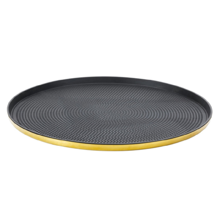 Service Ideas, TRME14RIVG, Insert Tray, 14.75" dia. x 0.63"H, non-slip tray, 18/8 stainless steel, black silicone rubber, polished, vintage gold finish (priced per each, packed 12 each per case)