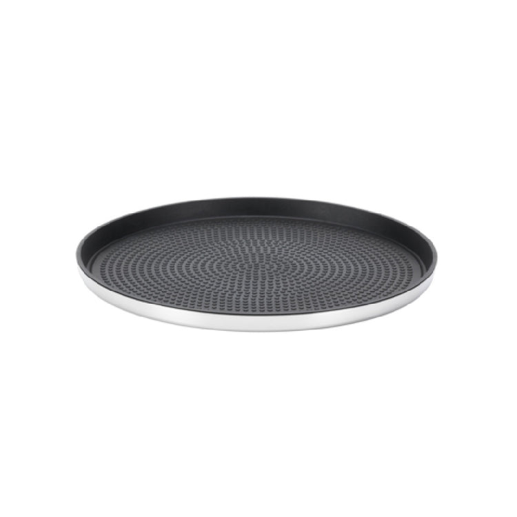 Service Ideas, TRME9RI, Insert Tray, 9.25" dia. x 0.63"H, non-slip tray, 18/8 stainless steel, black silicone rubber, polished stainless finish (priced per each, packed 12 each per case)