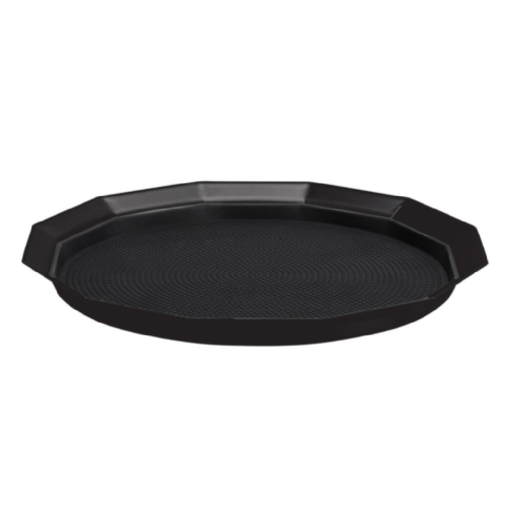 Service Ideas, TRPN1412RIBSBX, Non-Slip Tray, 14" Dia. x 1-1/2"H, removable insert, (12) sided serving tray, 18/8 stainless steel, black silicone rubber, stackable, black onyx