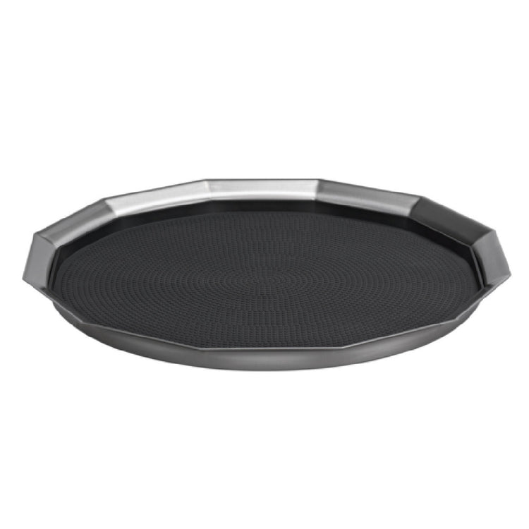 Service Ideas, TRPN1614RIBS, Serving Tray, large, (12) panel, 16"W x 16"D x 1"H, with non-slip removable insert, brushed stainless and black