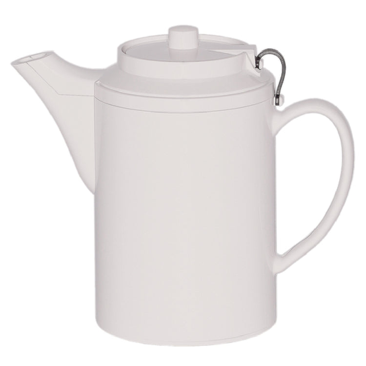 Service Ideas, TST612WH, Teapot, 0.5 liter (16 oz.), 3-1/2" x 6-1/2" x 6", retention: 2-3 hours, dishwasher safe, double-wall insulated, self-locking lid with tether, baffled spout, dripless, flow-controlled spout, ABS plastic, white, Made in USA (Priced per each, packed 6 each per case)