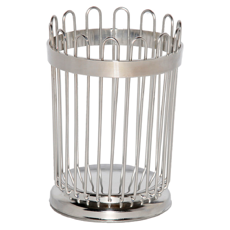 Service Ideas, WBB5PS, Breadstick Basket, 3-1/2" x 3-3/4" x 5", round, weighted base, hand wash only, wire, 18/8 stainless steel, brushed finish (Priced per each, packed 12 each per case)
