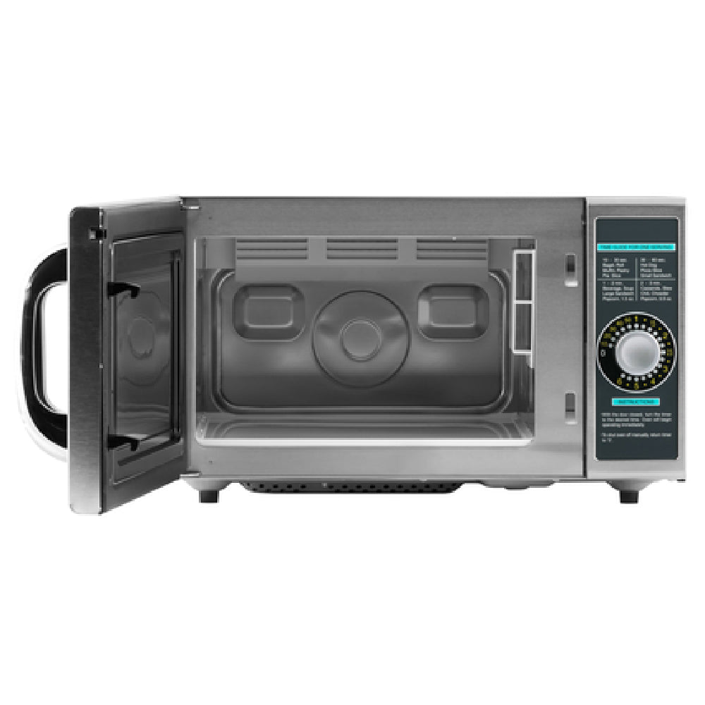 Sharp, R-21LCFS, Microwave Oven, medium duty, 1000 watts, 1.0 cu. ft. capacity, stainless steel door, cavity and outer wrapper, durable side-hinged see-thru door, (1) power level, 6 minutes manual light up dial timer, timer heating-time guide, timer resets to 0 when door is opened during cooking cycle, 120v/60/1-ph, 14 amp, NEMA 5-15P, UL, NSF
