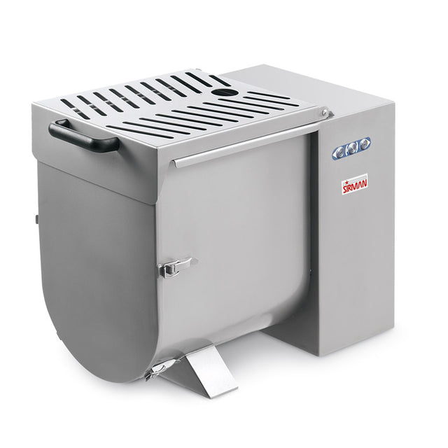 SIRMAN USA, 40803616F, IP 50 M Meat Mixer, floor model, electric, 105 lb. capacity, forward & reverse mixing, removable stainless steel single paddle kneader, side opening, safety interlock, waterproof stainless steel keypad, fan-cooled motor, overload & no-volt release protection, stainless steel construction, 1.15 HP, 220v/60/1-ph, 850 watts, 3.7 amps