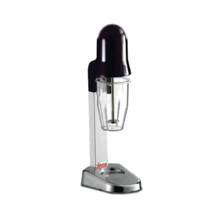 SIRMAN USA, 65012148, SIRIO 1C Drink Mixer, single spindle, 18 oz. jug capacity, with clear Tritan mixing cup, spindle includes round foaming agitator designed for frozen coffees, safety interlock, sealed & ventilated ball bearing motor, direct transmission, ABS plastic & anodized aluminum alloy construction, 14000 rpm, 0.14 HP, 100 watts, UL, ETL-Sanitation