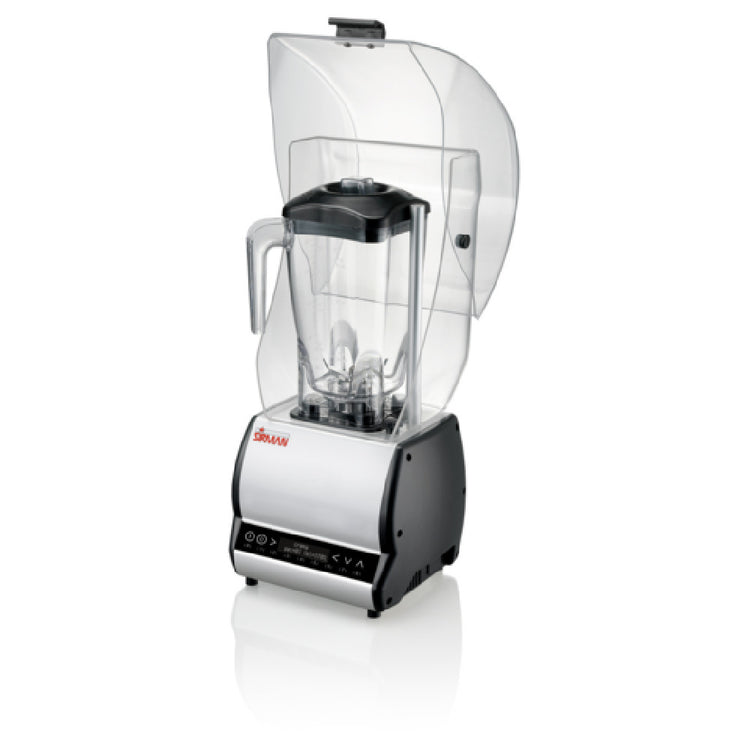SIRMAN USA, 65395018, BARMASTER Blender/Juicer, variable speed with timer, 68 oz. tritan container, tempered stainless steel blades, rubber lid with safety interlock & feed opening, 8 programs, wi-fi, direct gear transmission, sound enclusure, fan-cooled motor, aluminum base, 24,000 rpm, 1 HP, 750 watts