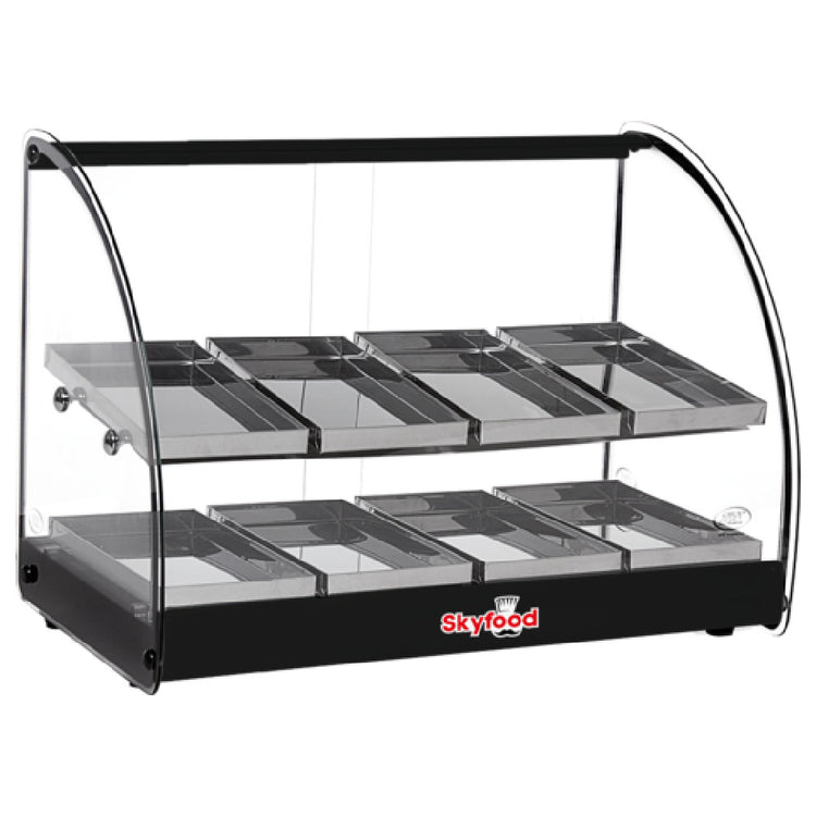 Skyfood Equipment FWD2-24BL Food Warmer Display Case 24-1/2"W X 14-3/8"D X 17-1/2"H (2) Shelves With (8) Stainless Steel Pans Per Shelf