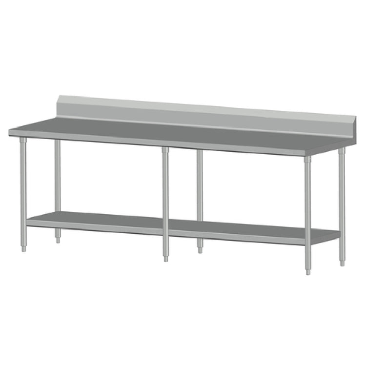 SPG International, 10-SL-SLSB-30, Universal Stainless Work Table, 120"W x 30"D, 14/300 series stainless steel top, 6" backsplash, with fixed stainless steel undershelf & frame