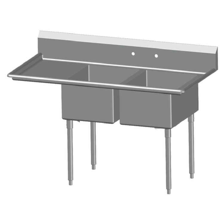 SPG International, 2N1824-LD18, Universal Stainless Sink, two compartment, 18" left-hand drainboard, 24" front-to-back x 18" wide sink compartment, 14" deep, with 9"H backsplash, stainless steel legs, 16/300 series stainless steel, NSF, CSA