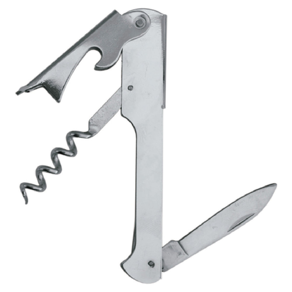The Spill-Stop 131-01 Waiter's Cork Screw 4-1/4" with Straight Blade is a multi-functional tool designed for efficiency and durability in the hospitality industry. Measuring 4-1/4 inches, this waiter's corkscrew combines a sleek, compact design with practical functionality, making it an essential accessory for restaurant staff and wine enthusiasts alike. The chrome-plated finish not only adds a touch of elegance but also ensures long-lasting durability, resistant to wear and corrosion. Its straight blade feature provides precision in foil cutting, offering neat and professional results every time. Additionally, this versatile tool includes a bottle opener, enhancing its utility for opening a variety of beverages with ease. The Spill-Stop 131-01 is crafted for those who appreciate straightforward yet effective tools, providing reliable performance in demanding environments. Its compact size and multi-functional capabilities make it an ideal choice for waiters and bartenders who require efficient and space-saving solutions. Whether used in fine dining establishments or casual settings, this corkscrew stands out for its practical design and robust construction, catering to the diverse needs of different segment markets within the hospitality industry. Its combination of functionality, durability, and elegance makes it a valuable asset for professionals in the field.