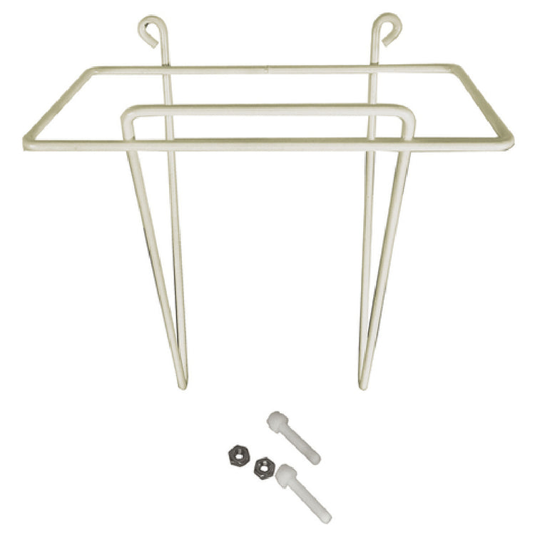 Spill-Stop 1402-0 Scoop Holder Large 6-1/2" x 3-11/16" x 6-7/8"H is a versatile and robust solution designed to accommodate 32-82 oz. scoops, making it an essential accessory for a variety of industries, including food service and commercial kitchens. This scoop holder features an open cage style, crafted to ensure easy access and visibility of its contents. Constructed with powder-coated steel wire, this holder is both durable and resistant to rust, thanks to its epoxy-coated finish. Its white finish adds a clean, professional look to any setting. The inclusion of plastic nuts and screws with the Spill-Stop 1402-0 ensures straightforward installation and secure attachment. Proudly made in the USA, this scoop holder combines quality craftsmanship with practical design. Its dimensions of 6-1/2" x 3-11/16" x 6-7/8"H make it suitable for a range of scoop sizes, providing flexibility to meet varying operational needs. Ideal for environments that prioritize organization and efficiency, the Spill-Stop 1402-0 offers a reliable storage solution that maintains accessibility while promoting hygienic storage practices. Its robust construction and thoughtful design make it an invaluable asset for maintaining order and functionality in professional settings.