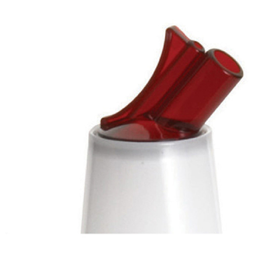 The Spill-Stop 1699-3 Mix & Pour Replacement Spout Only snap-in red is a specialized component designed for seamless integration into existing pour systems. This product is exclusively a replacement spout, ensuring that users can maintain the functionality of their pour systems without needing a complete overhaul. Its snap-in feature allows for straightforward installation, making it a convenient choice for professionals in the beverage industry who require swift and efficient replacements. Colored in vibrant red, this spout is easily identifiable, facilitating quick service operations and minimizing downtime. The Spill-Stop 1699-3 is tailored for those seeking to enhance efficiency and reliability in their liquid dispensing systems, particularly in settings such as bars, restaurants, and cafes where precise pouring is crucial. As a standalone component, it underscores the importance of maintaining high standards in beverage service equipment. This replacement spout meets industry demands for quality and performance, ensuring that users can continue to deliver exceptional service with minimal disruption. Its durable construction and ease of use make it a valuable asset for maintaining optimal performance in high-volume environments where consistency and speed are paramount.