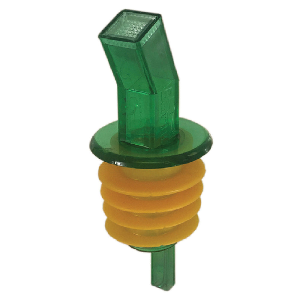 The Spill-Stop 313-64 Ban-M Screened Pourer® Without Collar Extra-large Amber Poly-kork is a specialized pourer designed for efficiency and functionality in liquid dispensing applications. This pourer is crafted to fit oversized containers, including quart, liter, half-gallon, 1.75-liter, and gallon bottles, making it a versatile tool for various industry needs. It features an extra-large amber poly-kork construction, which ensures durability and a snug fit, minimizing spillage and enhancing the precision of pour. The absence of a collar aids in a streamlined design that facilitates easy usage and cleaning. Its green hue not only adds a distinctive look but also aids in quick identification during busy operations. Proudly made in the USA, the Spill-Stop 313-64 Ban-M Screened Pourer® is an ideal choice for bars, restaurants, and other venues that require consistent and efficient liquid management solutions. The screened design ensures a smooth pour while preventing unwanted particles from entering the bottle, enhancing the purity and quality of the dispensed liquid. This product is excellently suited for professional environments demanding reliability and ease of use, ensuring it meets the rigorous standards expected by the beverage industry.