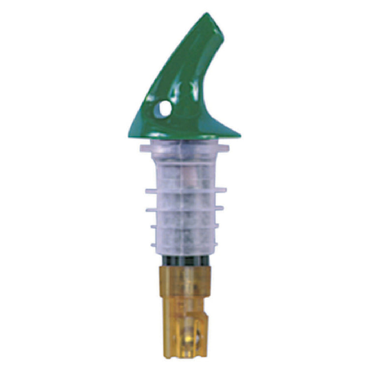 The Spill-Stop 384-14 Posi-Por™ 2000 Pourer 1 Oz. Green With No Collar is a specialized pouring device designed for precision and efficiency in liquid dispensing. This pourer is crafted in the USA, highlighting its superior quality and reliable construction. Its design, featuring a sleek green finish and no collar, provides a streamlined look, making it suitable for various settings such as bars, restaurants, and catering services. The key technical specification of this pourer is its precise 1 oz. measurement capability, ensuring consistent serving sizes that are essential for cost control and inventory management in commercial environments. The absence of a collar allows for easy attachment and removal from bottles, enhancing user convenience. The Posi-Por™ technology ensures a smooth and controlled pour, reducing spillage and waste, which is particularly beneficial for high-volume establishments aiming to maintain efficiency and precision. This pourer's durable construction ensures longevity, making it a worthwhile investment for professionals in the food and beverage industry who prioritize accuracy and reliability in their serving tools.