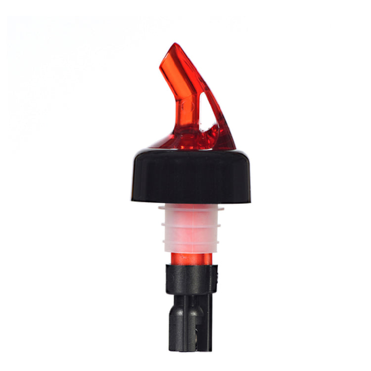 The Spill-Stop 789-21 Pourer 5/8 Oz. Imported is a precision-engineered liquid dispensing tool designed to enhance the efficiency and accuracy of pouring operations across various industry segments. This pourer features a distinctive 5/8 oz. capacity, making it suitable for establishments that require precise volume control, such as bars, restaurants, and catering services. The striking red pourer paired with a black collar not only adds a touch of visual appeal but also ensures a tight, secure fit on most standard bottles, reducing spillage and wastage. Constructed from durable plastic, this pourer is lightweight yet robust, offering long-lasting performance in high-demand environments. Its imported quality underscores its adherence to international standards, making it a reliable choice for businesses looking to streamline their pouring processes. The Spill-Stop 789-21 Pourer is an essential tool for hospitality professionals seeking to maintain consistency and efficiency in beverage service, providing a perfect balance of functionality and aesthetic appeal. Whether used for liquor, syrups, or oils, this pourer delivers precision and durability, positioning itself as an indispensable asset in any professional setting where volume control and presentation are paramount.
