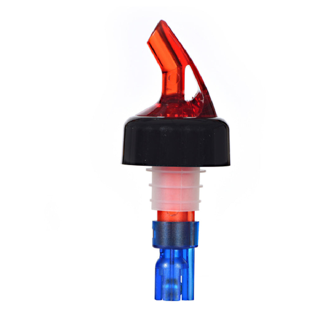 The Spill-Stop 789-23 Pourer 7/8 Oz. Imported is a precision-engineered tool designed for professionals in the beverage industry who require consistent and controlled pouring. This pourer is distinctive with its red plastic construction accented by a sleek black collar, offering both functionality and a touch of style. The 7/8 oz. capacity is ideal for bartenders seeking to maintain precise pour sizes, ensuring consistency in cocktail preparation and managing inventory effectively. Imported to meet high-quality standards, the Spill-Stop 789-23 Pourer is crafted from durable plastic, providing a lightweight yet resilient option for fast-paced environments. The combination of vibrant colors not only aids in quick identification during service but also enhances the aesthetic appeal of any bar setup. This pourer is particularly valuable for establishments that prioritize accuracy and efficiency in beverage service, from upscale cocktail lounges to bustling nightclubs. Its design emphasizes ease of use and longevity, making it a preferred choice for professionals who demand reliability. The Spill-Stop 789-23 is a testament to thoughtful design and quality manufacturing, meeting the needs of diverse market segments within the beverage service industry.