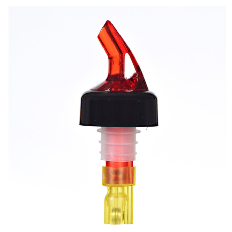 The Spill-Stop 789-27 Pourer 1-1/2 Oz. Imported is a high-quality pourer designed for precision and efficiency in liquid dispensing tasks. This pourer is crafted from durable plastic and features an eye-catching red color with a sleek black collar, providing both functionality and aesthetic appeal. With a capacity of 1-1/2 oz., it is ideal for use in various settings such as bars, restaurants, and even home kitchens, where consistent and measured pouring is essential. The imported design ensures a certain standard of craftsmanship and reliability, making it a preferred choice for professionals in the beverage industry. This pourer is particularly beneficial for establishments that require speed and accuracy in serving, as its design minimizes spills and wastage, thereby enhancing overall service efficiency. Its robust construction ensures longevity, even with frequent use, making it a cost-effective solution for volume-heavy environments. The Spill-Stop 789-27 Pourer combines sophisticated design with practical performance, addressing the needs of both high-volume commercial settings and home users who appreciate precision in their liquid measurements.