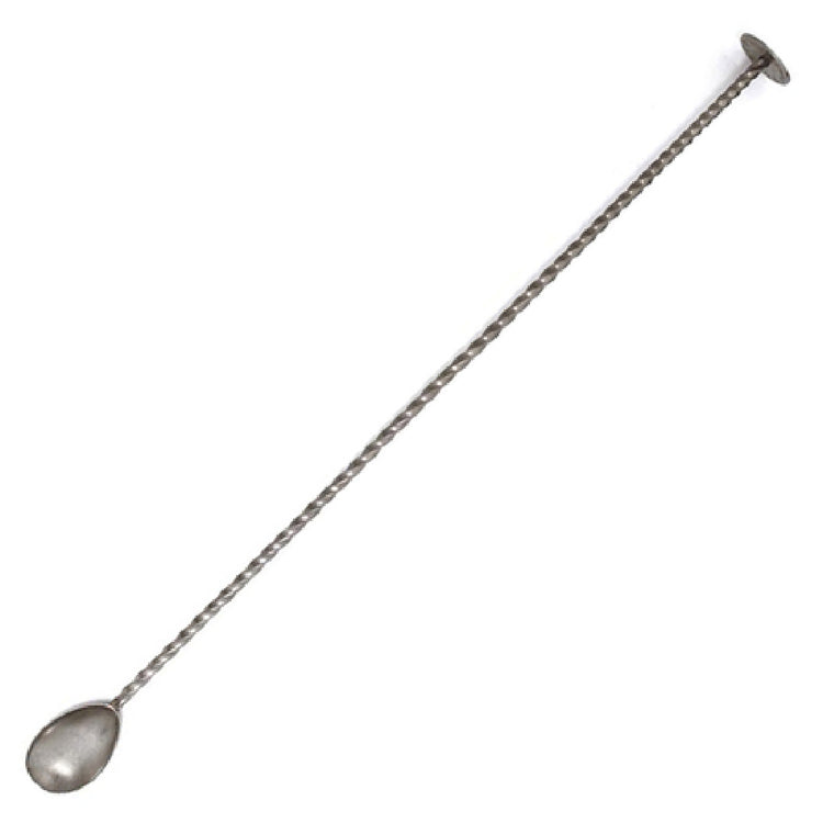 The Spill-Stop 840-34 Bonzer Disc Muddler Bar Spoon 15-3/4" (40cm) Twisted Handle is an essential tool for bartenders and mixologists, crafted from stainless steel with a distinctive distressed finish, providing both aesthetic appeal and durability. This 15-3/4 inch (40cm) bar spoon is uniquely designed with a twisted handle, enhancing grip and control during use, making it ideal for stirring and muddling cocktails with precision. Each spoon is individually packaged, ensuring it arrives in pristine condition. The stainless steel construction offers excellent resistance to corrosion, making it perfect for busy bar environments, while the distressed finish adds a touch of sophistication. Whether used in a high-end cocktail bar, a bustling restaurant, or for home bartending enthusiasts, the Spill-Stop Bonzer Disc Muddler Bar Spoon stands out for its combination of functionality and style. Its ergonomic design and robust materials cater to professionals seeking dependable barware, while its elegant look appeals to those who value aesthetics in their cocktail preparation tools. This bar spoon is a versatile and durable choice, engineered to meet the demands of various market segments within the hospitality industry.
