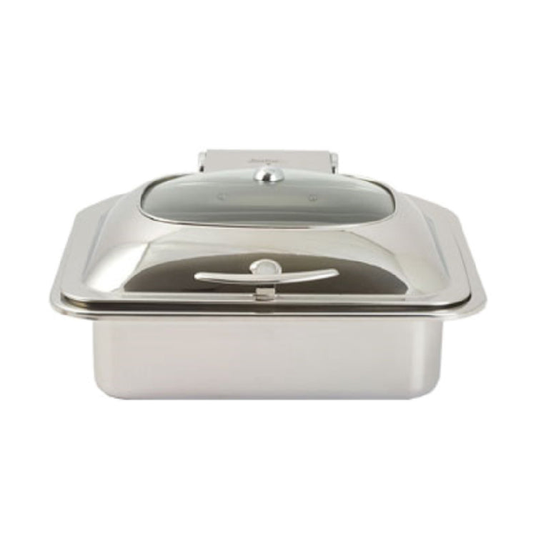 The Spring USA 2173-6/12 Reflection Induction Server is a versatile induction server designed to accommodate capacities ranging from 2 quarts to 6.9 quarts, catering to varying needs across the food service industry. Measuring 16.75 inches in length, 15 inches in width, and 7.5 inches in height, this square server is engineered to fit seamlessly into diverse culinary environments. It features a stainless steel insert pan, included to enhance its utility and durability. The server incorporates an innovative axle system, allowing for smooth operation and ease of use. Its cover, equipped with a clear view top, provides visibility while maintaining optimal food temperatures. The wing-style handle offers ergonomic handling, ensuring ease of transport and use. Crafted from 18/8 stainless steel, this induction server boasts a mirror-polished finish, adding a touch of elegance to any service setting. As a stock item, it promises immediate availability for those looking to enhance their serving solutions. The Spring USA 2173-6/12 Reflection Induction Server embodies a blend of technical sophistication and practical design, making it a valuable asset for restaurants, catering services, and hospitality venues seeking reliable and aesthetically pleasing serving equipment.