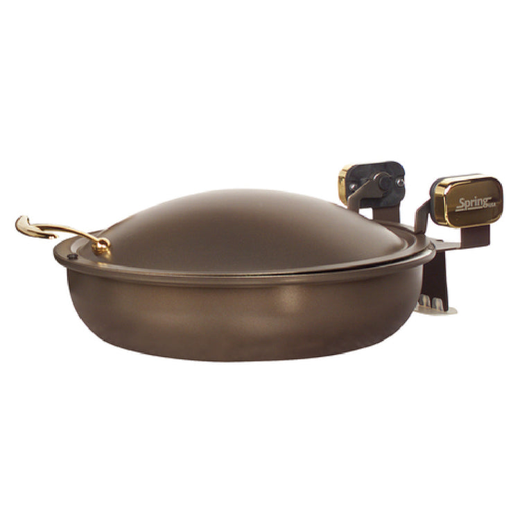 The Spring USA 2382-567/36 Seasons Induction Sauteuse is a versatile cooking vessel, available in three capacities: 1-1/4, 2-1/2, or 4 quarts. Its substantial size, measuring 15-1/4 inches in diameter and standing 6 inches tall, makes it ideal for various culinary applications, whether in professional kitchens or high-end home cooking environments. The sauteuse features an all-angles axle system, ensuring even heat distribution across its entire surface, which is crucial for precision cooking techniques. The bronze construction with chrome accents not only provides a sophisticated aesthetic but also enhances durability and heat retention. It is important to note that insert pans must be ordered separately, allowing for customization based on specific cooking needs. As a stock item, the Spring USA 2382-567/36 is readily available for quick deployment in culinary settings. This product is particularly valuable for chefs and cooking enthusiasts who require reliable, high-performance cookware that seamlessly integrates with modern induction cooking technology. Its elegant design and practical functionality make it a standout piece in any kitchen arsenal, catering to diverse market segments, from restaurants to catering services and gourmet home kitchens, where quality and performance are paramount.