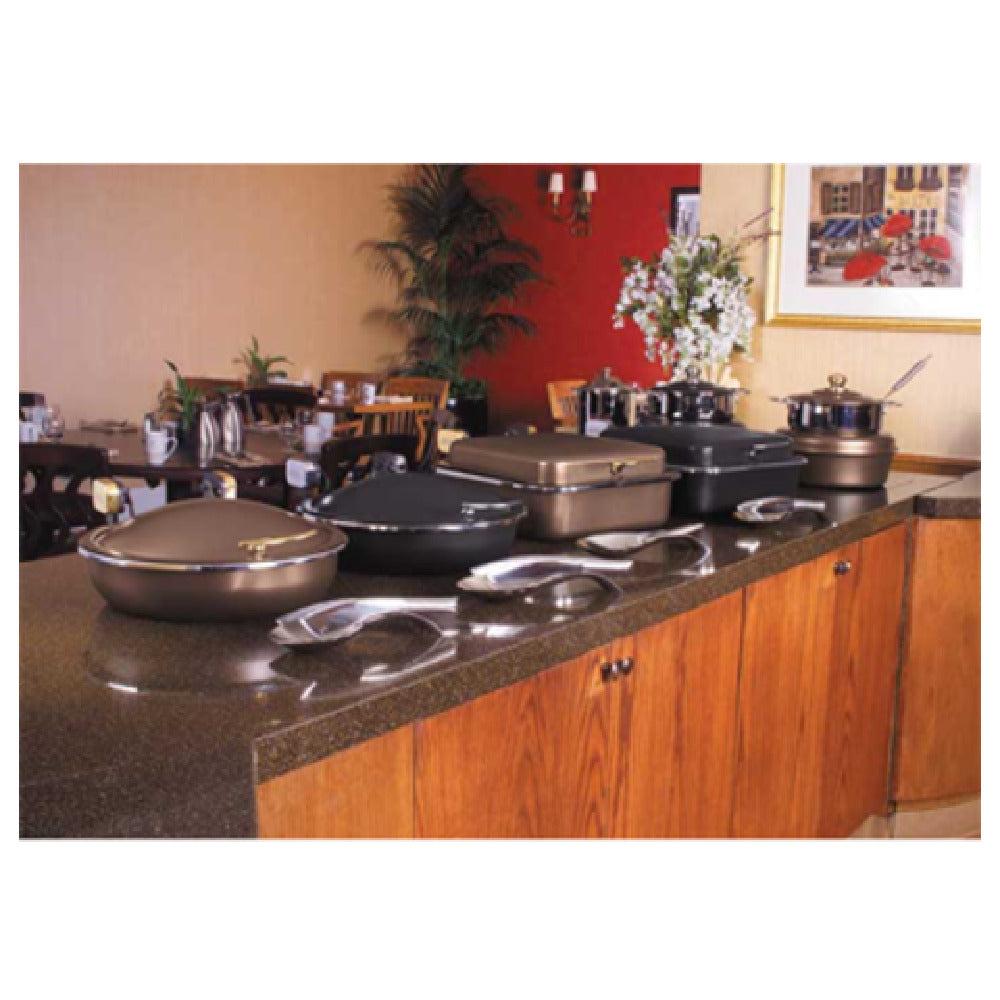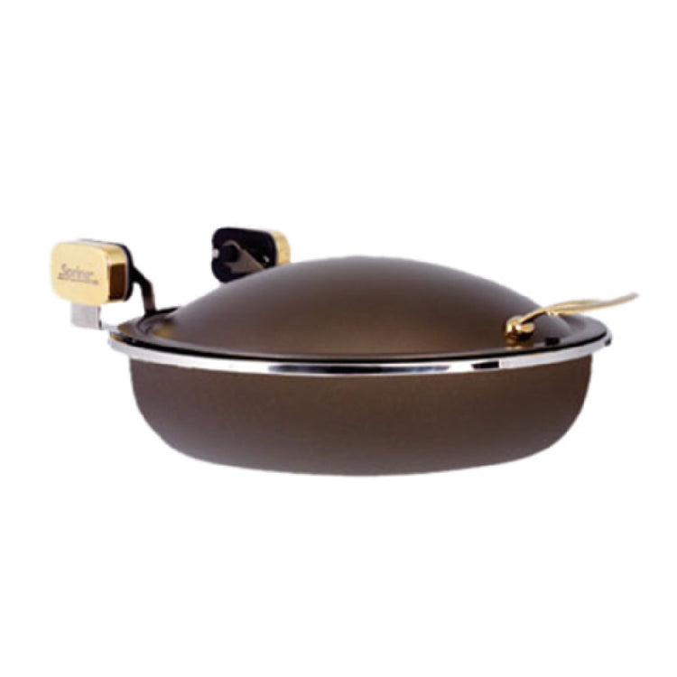The Spring USA 2382-597/36 Seasons Induction Sauteuse is a versatile cooking solution offering different capacities of 1-1/4, 2-1/2, or 4 quarts, catering to varying cooking requirements. With dimensions of 15-1/4 inches in diameter and 6 inches in height, this sauteuse is designed for precision and efficiency. It features an all angles axle system, enhancing maneuverability and control during cooking. The exterior boasts a refined bronze finish accentuated with gold details, presenting a sophisticated aesthetic suitable for high-end kitchens. While the sauteuse itself is a stock item, it requires separate orders for insert pans, allowing customization based on specific culinary needs. This induction-ready cookware is ideal for professional chefs and culinary enthusiasts who value both functionality and style. The intricate design details and flexible capacity options make it particularly appealing for catering services, upscale restaurants, and hotel kitchens, providing a unique blend of performance and elegance.