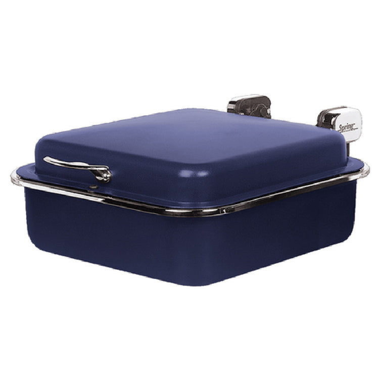The Spring USA 2384-487 Seasons Induction Buffet Server is a versatile and sophisticated appliance designed for catering and hospitality sectors, offering a 2/3 size configuration and a capacity of up to 6 quarts. With dimensions of 15-3/8 inches in length, 15-3/8 inches in width, and 7 inches in height, this square-shaped buffet server integrates seamlessly into a variety of serving environments. A key highlight is the innovative all-angles axle system, ensuring stability and ease of use during service. The aesthetic appeal is enhanced by its sapphire hue with elegant black pearl accents, making it a tasteful addition to any professional setting. Note that the insert pans must be ordered separately, allowing for customizable use depending on specific needs. This product is available via special order and requires an 8-10 week lead time for delivery, which underscores its exclusivity and custom manufacturing process. The Spring USA 2384-487 is an ideal choice for premium hospitality services seeking both functionality and aesthetic appeal in their buffet setups.