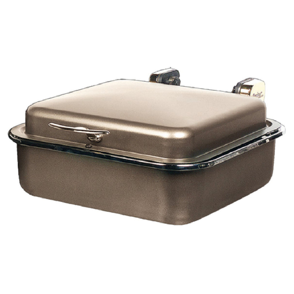 The Spring USA 2384-567 Seasons Induction Buffet Server is an elegantly designed, 2/3 size unit with a capacity of 6 qt. or smaller, featuring dimensions of 15-3/8"L x 15-3/8"W x 7"H. This square-shaped buffet server is equipped with an all angles axle system, enhancing its versatility and functionality within any food service environment. The server's aesthetic is defined by its bronze construction with chrome accents, providing a sophisticated appearance suitable for high-end dining settings. It is important to note that insert pans must be ordered separately, allowing for customizable configurations to suit various culinary requirements. As a stock item, the Spring USA 2384-567 is readily available to meet the demanding needs of the hospitality industry. This product is particularly valuable for catering services, hotels, and restaurants that require efficient and stylish serving solutions. Its induction heating capability ensures precise temperature control, making it an essential tool for maintaining food at the optimal serving temperature. The Spring USA 2384-567 Seasons Induction Buffet Server thus stands out as a versatile, reliable, and visually appealing option for professionals within the food service sector.
