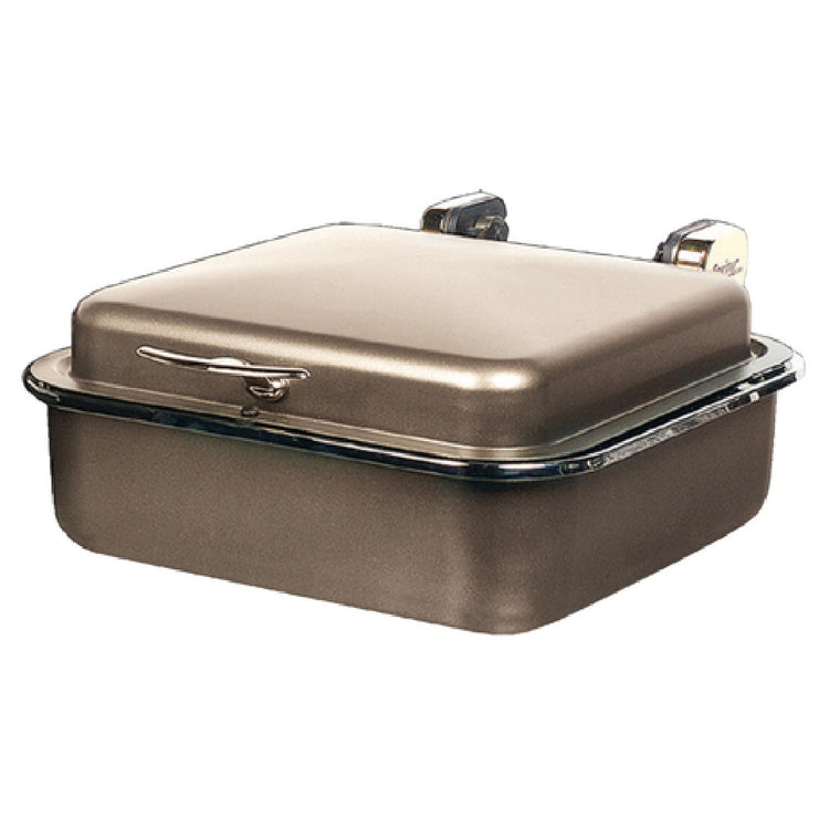 The Spring USA 2384-587 Seasons Induction Buffet Server 2/3 Size 6 Qt. Or Smaller is an innovative solution tailored for the hospitality industry, offering versatile functionality in buffet settings. With dimensions of 15-3/8"L x 15-3/8"W x 7"H, this square buffet server is designed to save space while accommodating a variety of culinary presentations. Its all-angles axle system provides seamless maneuverability and stability, enhancing the dining experience through easy access to food from multiple angles. This server features a sophisticated bronze finish, complemented by elegant black pearl accents, adding a touch of luxury to any event. It's important to note that insert pans must be ordered separately, allowing for customizable configurations to suit specific requirements. This product is a stock item, ensuring timely availability for establishments looking to elevate their service efficiency and aesthetic appeal. The Spring USA 2384-587 is particularly beneficial for catering events, hotel buffets, and banquet facilities, where its combination of style and practicality can be fully appreciated.