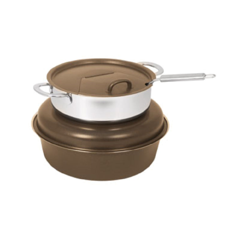 The Spring USA 2385-567/6 Seasons Induction Soup Tureen is a meticulously designed kitchen essential with a capacity of 6 quarts, perfectly suited for a variety of culinary environments. With its dimensions of 13-3/4 inches in diameter and 9-1/4 inches in height overall (O.A), this soup tureen is crafted from 18/10 mirror polished stainless steel, ensuring both durability and a visually appealing finish. The unique bronze with chrome accents adds a touch of elegance, making it a standout piece in any kitchen setting. One of its key features is the hinged notched cover, allowing for convenient serving and efficient heat retention. It's important to note that this tureen does not accommodate an insert pan, streamlining its design for direct use. As a stock item, the Spring USA 2385-567/6 ensures timely availability for professional caterers, upscale restaurants, and hotel buffets. Its aesthetic appeal and functional design make it an invaluable asset for those seeking to enhance their food presentation and serving efficiency. Whether for everyday use or special occasions, this soup tureen delivers on both style and practicality, meeting the demands of diverse market segments in the food service industry.