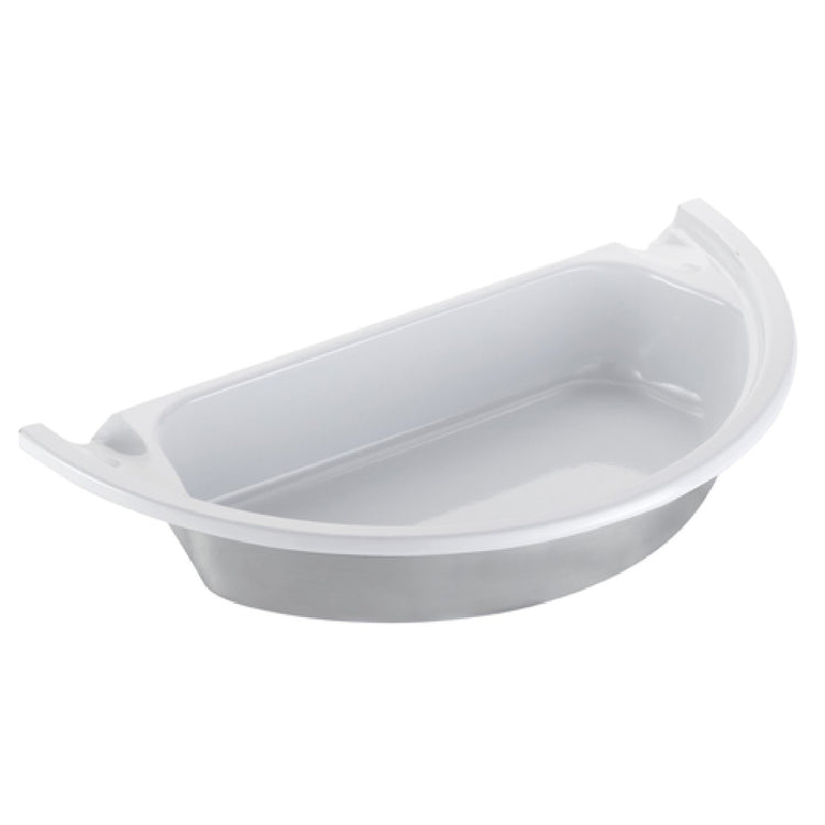 The Spring USA 372-62/36/12 Insert Pan for Sauteuse Buffet/Suite Server 2 Qt. is a premium kitchen accessory designed for versatility and efficiency in buffet settings. With dimensions of 14-1/10" x 7" x 2-3/10"H, this 1/2-round insert pan is crafted to fit seamlessly into sauteuse buffet servers. Constructed from durable stainless steel, it features a sophisticated white non-stick coating, offering enhanced food release and easy cleaning. This insert pan boasts a high heat resistance, capable of withstanding temperatures up to 500°F, making it a reliable choice for a wide range of culinary applications. Its dishwasher-safe nature ensures convenient maintenance, saving time and effort for busy kitchen professionals. The Spring USA 372-62/36/12 Insert Pan is ideal for caterers, hotel banquet services, and culinary establishments looking to optimize their buffet presentations with durable and aesthetically pleasing equipment. As a stock item, this pan is readily available to meet the demands of fast-paced food service environments. Its unique combination of durability, functionality, and style makes it a valuable asset in any professional kitchen seeking to enhance its service capabilities with quality insert pans.