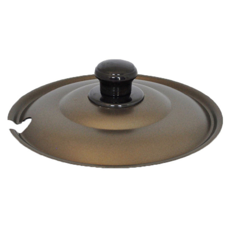 The Spring USA 375-61/6BB Soup Tureen Cover Notched 9-7/8" Dia. is a meticulously crafted accessory designed to complement a 6 qt. soup tureen. This cover stands out with its 9-7/8-inch diameter, making it a perfect fit for a variety of culinary settings, from professional kitchens to upscale dining establishments. It is constructed from superior 18/10 mirror-polished stainless steel, which not only offers an impressive aesthetic appeal but also ensures durability and resistance to corrosion, maintaining its shine even with frequent use. The unique notched design allows for easy accommodation of ladles, facilitating seamless service. Further enhancing its elegance, the cover features bronze with black pearl accents, adding a touch of sophistication to any soup presentation. This combination of aesthetic appeal, functional design, and robust material quality makes the Spring USA 375-61/6BB Soup Tureen Cover an ideal choice for chefs and restaurant owners seeking both style and practicality in their serving ware. Its premium materials and thoughtful design cater to a high-end market segment, elevating the dining experience through enhanced presentation and functionality.