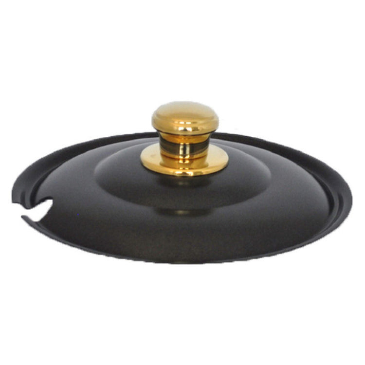 The Spring USA 375-61/6BG Soup Tureen Cover Notched 9-7/8" Dia. is a meticulously crafted accessory designed to complement any 6-quart soup tureen. Constructed from 18/10 mirror-polished stainless steel, this cover not only offers durability but also adds a touch of sophistication with its bronze finish and striking gold accents. The notched design facilitates easy ladle access while maintaining optimal heat retention, making it ideal for soup service in upscale dining establishments and catering events. Its precise 9-7/8" diameter ensures compatibility with standard-sized tureens, providing a snug and secure fit. This product serves the dual purpose of enhancing presentation and ensuring functionality, appealing to both high-end restaurants and professional caterers. As a stock item, the Spring USA 375-61/6BG Soup Tureen Cover is readily available, allowing businesses to seamlessly integrate it into their service offerings without delay. The blend of elegant design and practical features positions this cover as a premium choice for those in the hospitality industry seeking to deliver excellence in both form and function.
