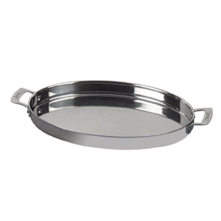 The Spring USA 8188-60/38 Primo! Buffet Sauté is a versatile culinary asset, designed to elevate the dining experience with its sophisticated and functional design. This sauté pan boasts a capacity of 1-1/2 quarts, making it suitable for a variety of cooking needs in buffet settings. Its dimensions are meticulously crafted at 15 inches in length, 11 inches in width, and 1-3/4 inches in height, providing ample space for sautéing and serving. The oval shape of the pan not only enhances its aesthetic appeal but also facilitates even heat distribution, ensuring consistent cooking results. It features two riveted side short handles, enhancing maneuverability and stability during use. As a stock item, the Spring USA 8188-60/38 Primo! Buffet Sauté is readily available for professional kitchens that demand reliable and durable cookware. Its practicality and design make it an indispensable tool for chefs in the hospitality industry, seeking to deliver quality with every dish. This product stands out for its combination of size, durability, and ease of use, catering to a wide range of culinary professionals who value efficiency and performance in their kitchen tools.