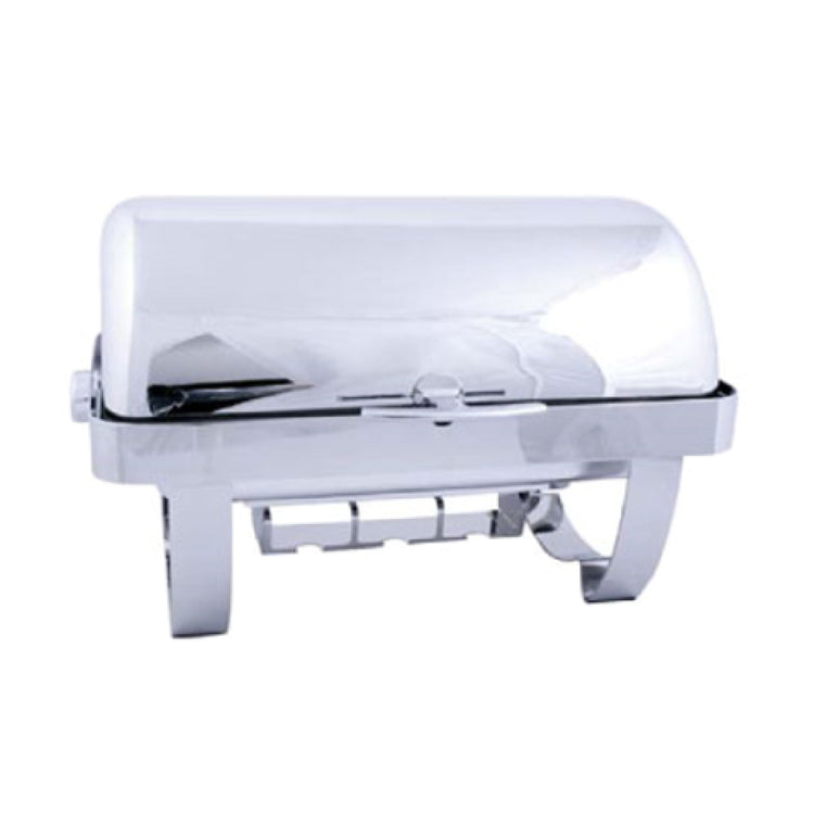The Spring USA K2509-6 Classic Chafer Rectangular 9-7/8 Qt. is a full-size chafer measuring 26"L x 18-7/8"W x 15-3/4"H, designed to meet the diverse needs of the food service industry. This chafer features a single 12" x 20" insert, making it an ideal choice for serving substantial portions at buffets and catering events. A standout feature is its 'All-Angles' axel system, which supports a revolving cover for convenient access to food while maintaining temperature and presentation standards. The inclusion of condensation channels highlights its design efficiency, ensuring minimal mess and optimal heat retention. Built with a fuel holder, this chafer accommodates traditional heating methods, providing consistent warmth to the dish. The skid/scratch-resistant footing ensures stability and durability, especially in high-traffic environments. Constructed from high-quality 18/10 stainless steel, the Spring USA K2509-6 is not only sleek and modern in appearance but also robust and long-lasting. This chafer is a stock item, readily available for purchase, making it a reliable choice for restaurants, hotels, and catering services seeking functional and stylish buffet solutions that enhance the dining experience.