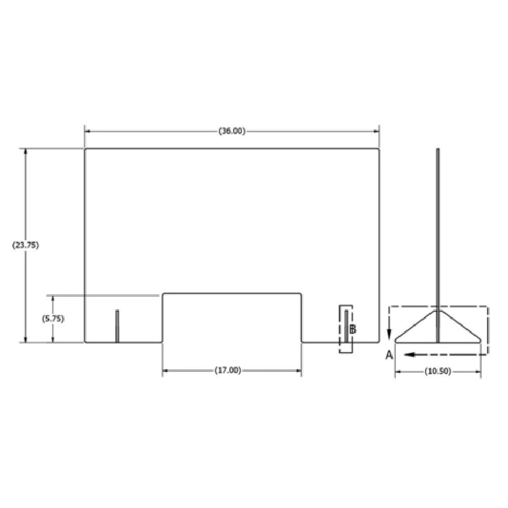 - 36"W x 10-1/2"D x 23-3/4"H shield dimensions